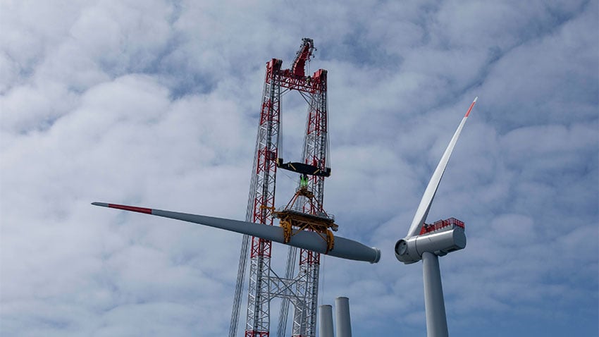 Très complexe, l’opération s’est faite en plusieurs étapes à partir d’un navire auto-élévateur. « En mer, le mât de l’éolienne d’une hauteur de 90 mètres est d’abord levé depuis la barge puis descendu par grue sur la pièce de transition de la fondation "jacket", avant d’y être fixé, détaille Ailes Marines. Dans un second temps, la nacelle est levée et installée sur le mât. Enfin, les trois pales sont fixées sur le rotor de la nacelle. »